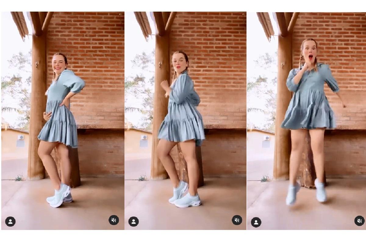 Thaeme dança em vídeo e mostra a barriga de 17 semanas de gravidez