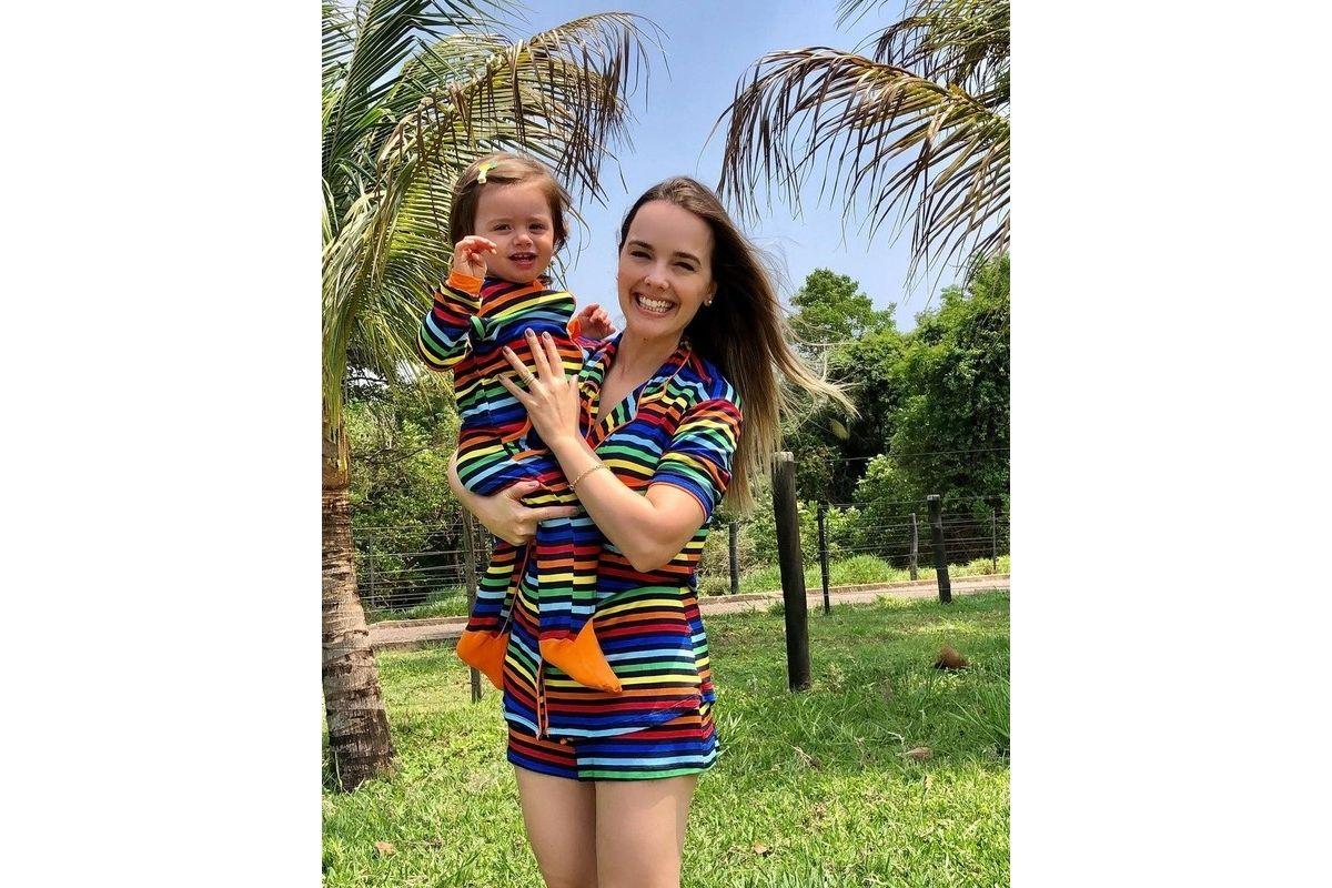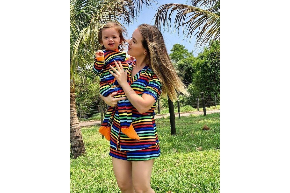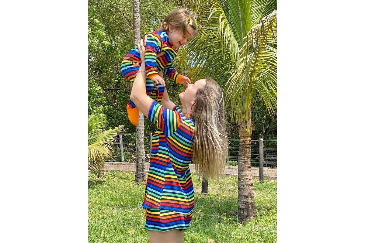 Thaeme Mariôto compartilhou nas redes sociais uma sequência de fotos divertidas com a filha Liz, de um ano, fruto do casamento da cantora com o empresário Fábio Elias. Nas imagens ela aparece com a menina usando pijamas com a mesma estampa e se divertindo ao ar livre.