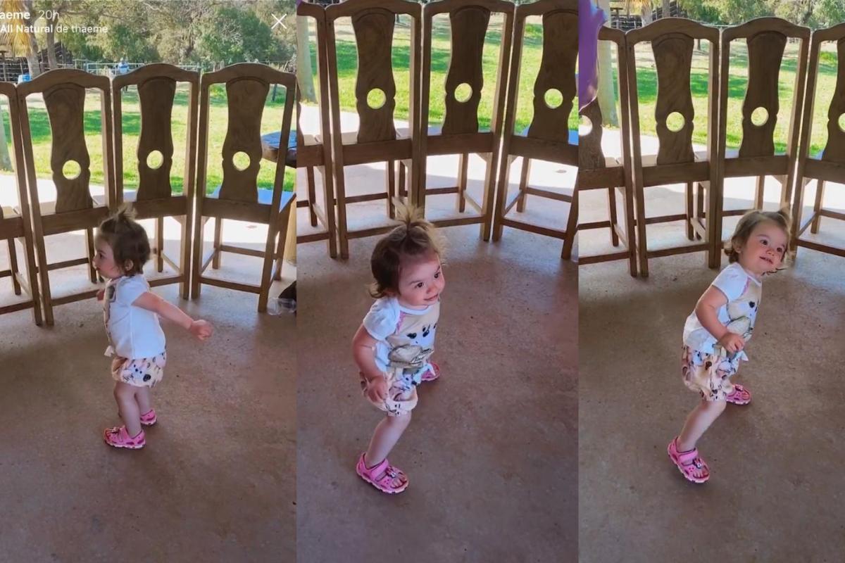 Na última quarta-feira, Thaeme cumpriu com o que prometeu e mostrou um momento muito divertido entre ela e a menina. Liz aparece dançando ao som de uma música da mãe, enquanto Thaeme incentiva a filha a continuar brincando.