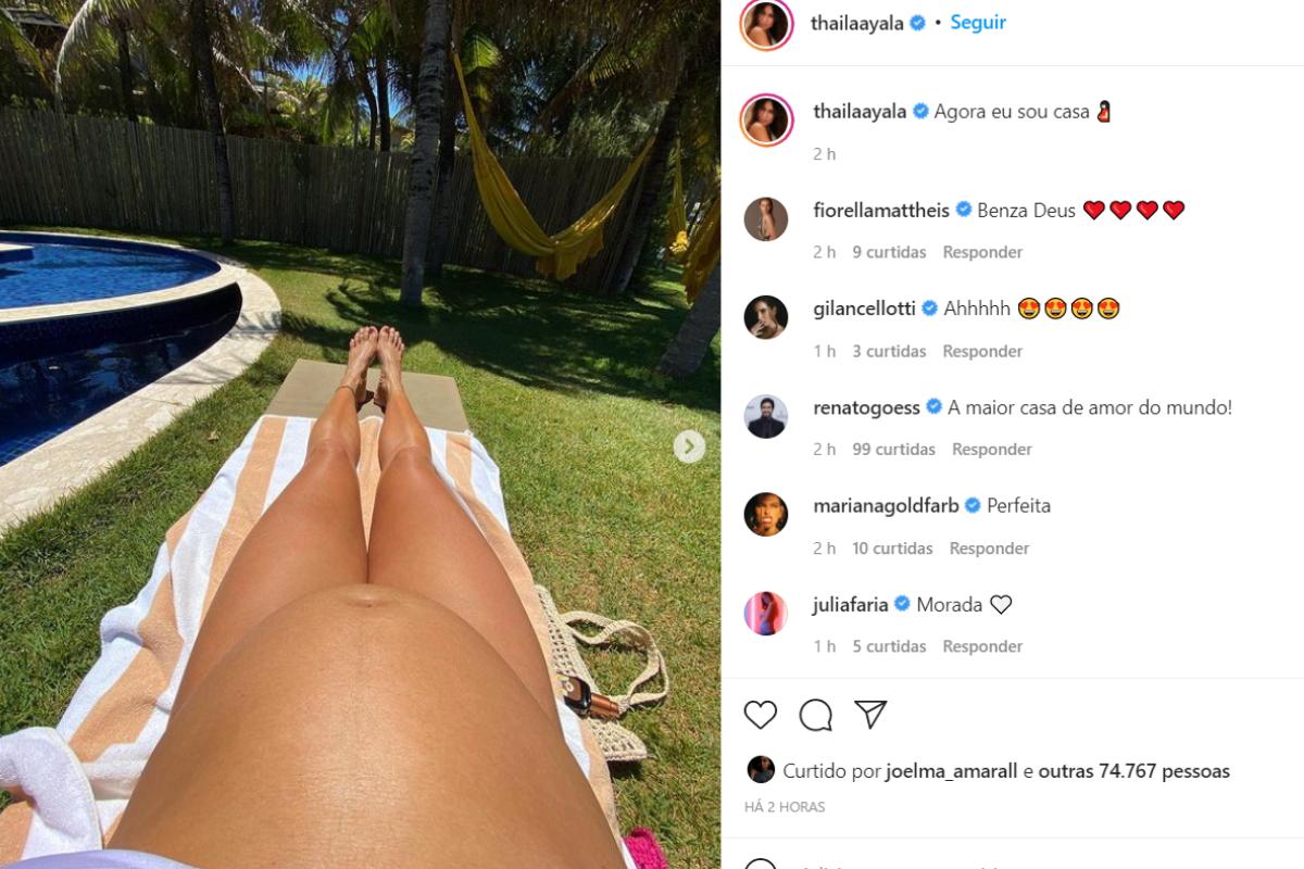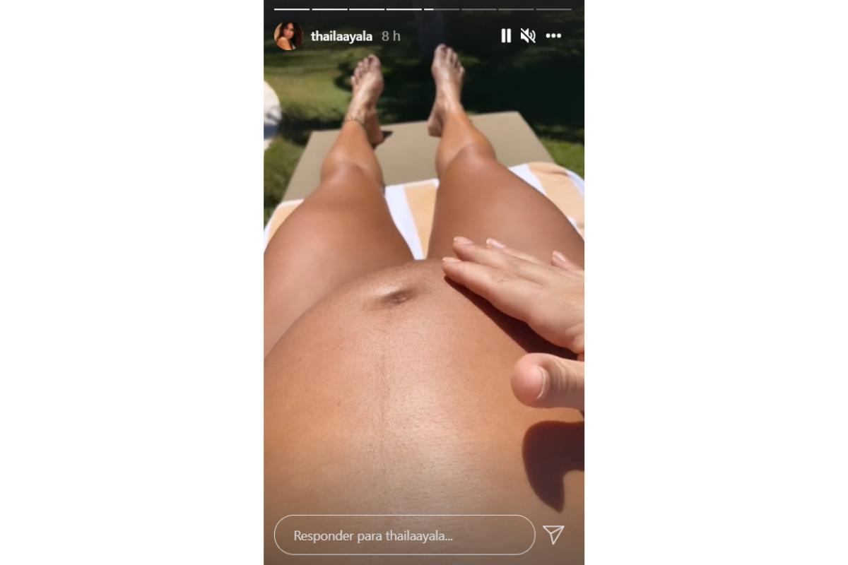 Foto publicada pela atriz exibindo a barriga grávida (Foto: Reprodução Instagram @thailaayala)