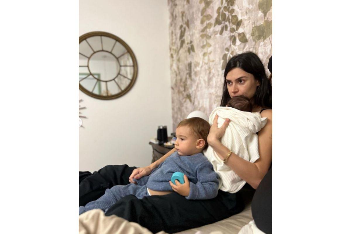 “Quando as duas crias querem colinho de mãe ao mesmo tempo!”, escreveu ela na legenda do post feito por meio de seu perfil no Instagram. As imagens mostram Thaila sentada na cama, com a recém-nascida no colo e o filho de um ano e cinco meses sentado entre as pernas da mãe.