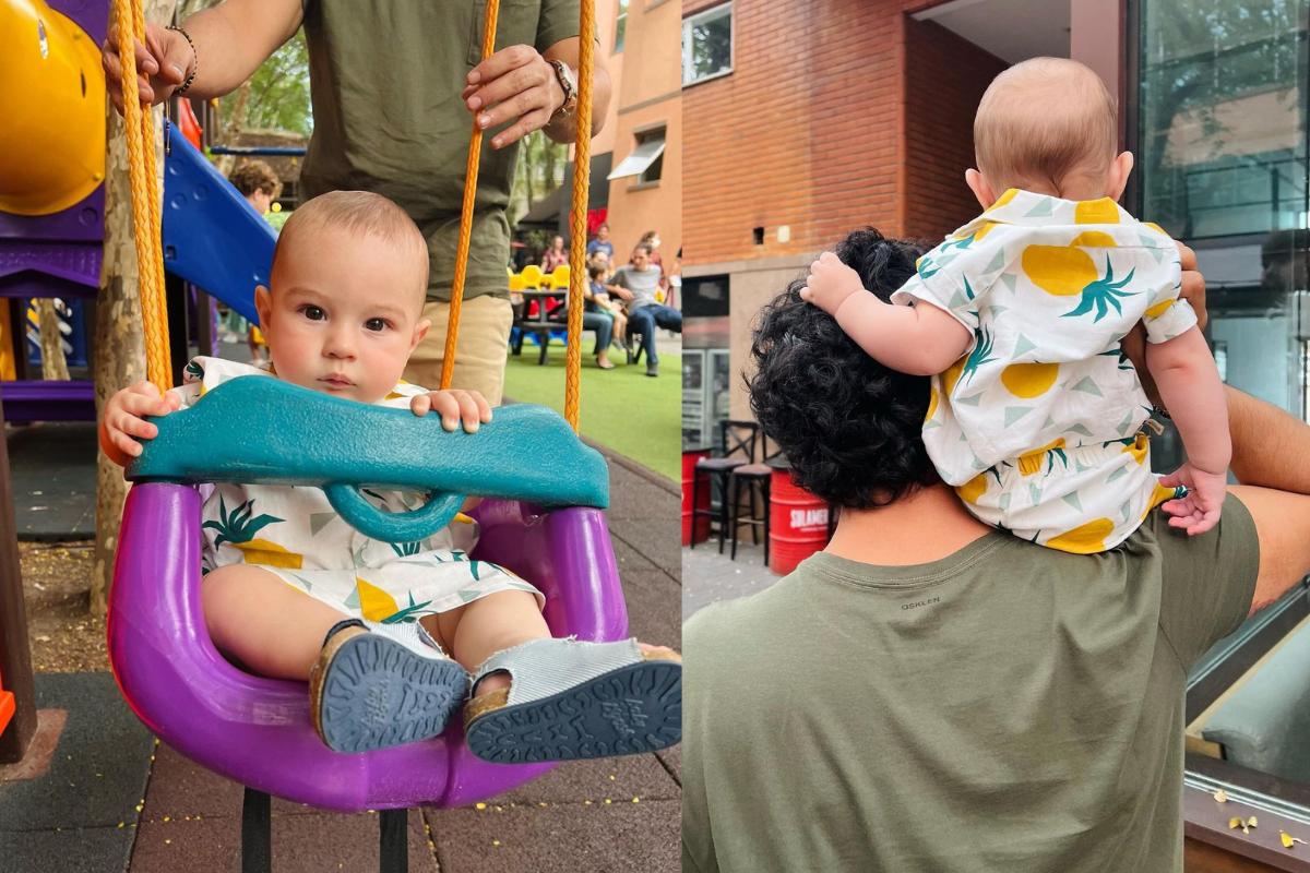 Nem eles aguentam tanta fofura! Thaila expressou o sentimento de “milhões” na legenda: “Não dá! Tem dias que é difícil não esmagar essa criaturinha!” Francisco está vestido com uma roupa florida e um belo sorriso no rosto, no colo da mãe. Em outra pose ele está sentado no ombro do pai. O casal parece estar se divertindo com os cliques do herdeiro.