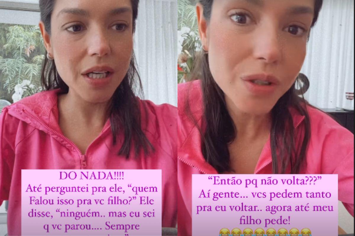 Mas enquanto estava gravando o vídeo explicando, o caçula da família interrompeu a mãe com um pedido muito especial e também pegou Thais de surpresa: “Então volta!”, pediu Teodoro para a mãe sobre ela retornar a ser atriz.