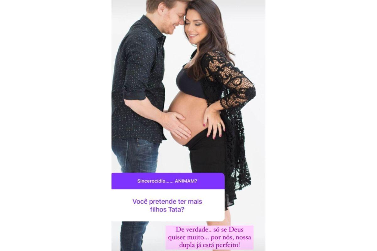 Ela falou se quer ou não ter mais filhos. Nas redes sociais, ela recebeu uma pergunta, escrito: “Você pretende ter mais filhos, Tatá?”. Logo, ela respondeu nas redes sociais sobre a criação dos filhos. “De verdade…só se Deus quiser muito…por nós, nossa dupla já está perfeito!”.