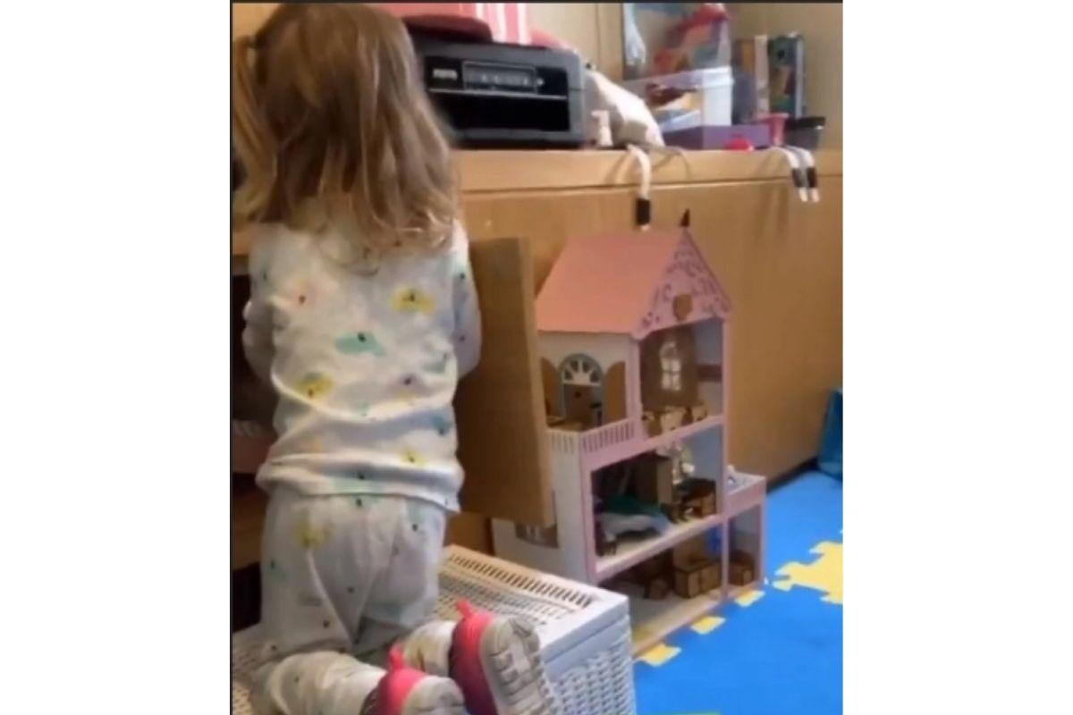 Melinda brincando com sua casa de bonecas (Foto: Reprodução/ Instagram @tatafersoza)