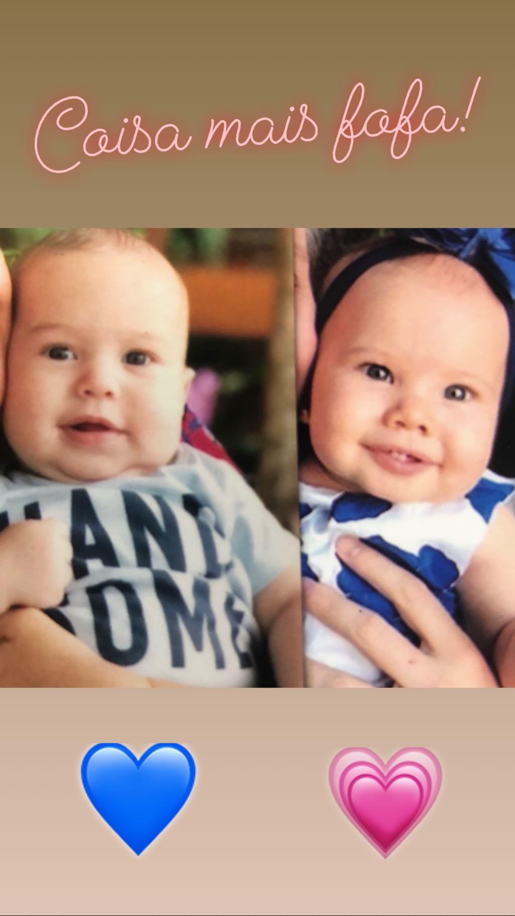 Em seus stories, ela compara fotos dos dois, que possuem meses de diferença de idade. Não é a primeira vez que Melinda e Teodoro surpreendem pela semelhança: os próprios pais chamam as crianças de “geminhos”, brincando que eles parecem gêmeos.