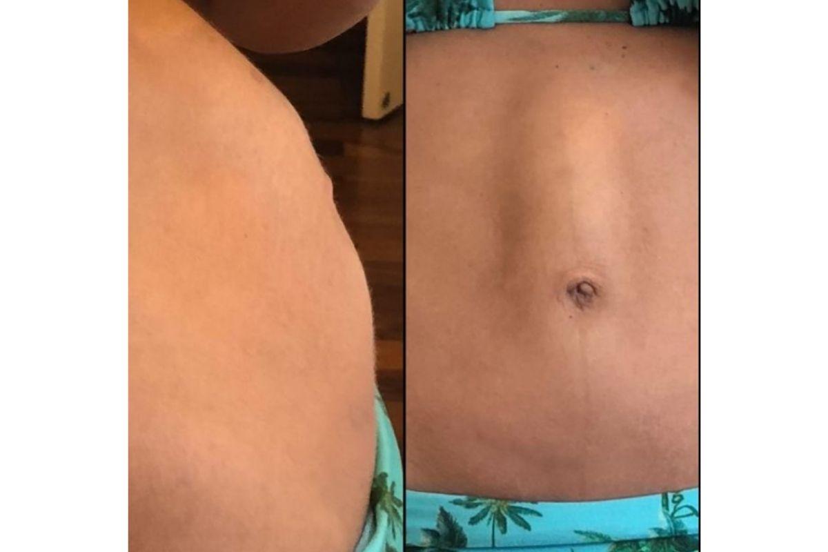 “Tive diástase abdominal, foi muito séria e me incomodava muito. Eu sentia dores e quase não podia fazer exercício físico. Conforme eu fazia abdominal, que eu ia para frente, ele ia abrindo e cada vez mais ia abrindo. Foi muito ruim para mim. No meu caso, eu precisei fazer cirurgia. Fiz a cirurgia no início de 2018. Foi muito importante para mim, mesmo”, começou ela contando, no vídeo.