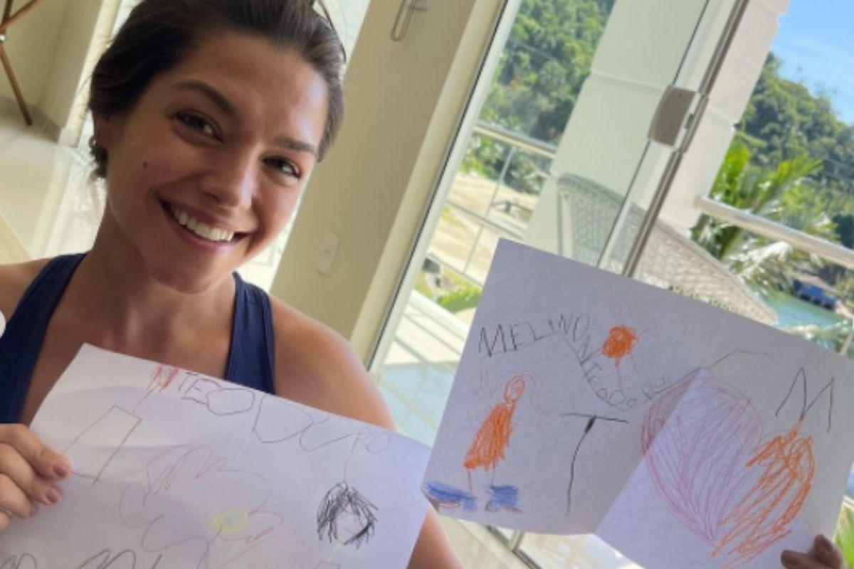 A apresentadora compartilhou uma série de fotos em que aparece brincando com Melinda e Teodoro. Nos registros, publicados em seu perfil no Instagram, os pequenos surgiram fazendo desenhos e a mamãe coruja se derreteu na legenda do post.