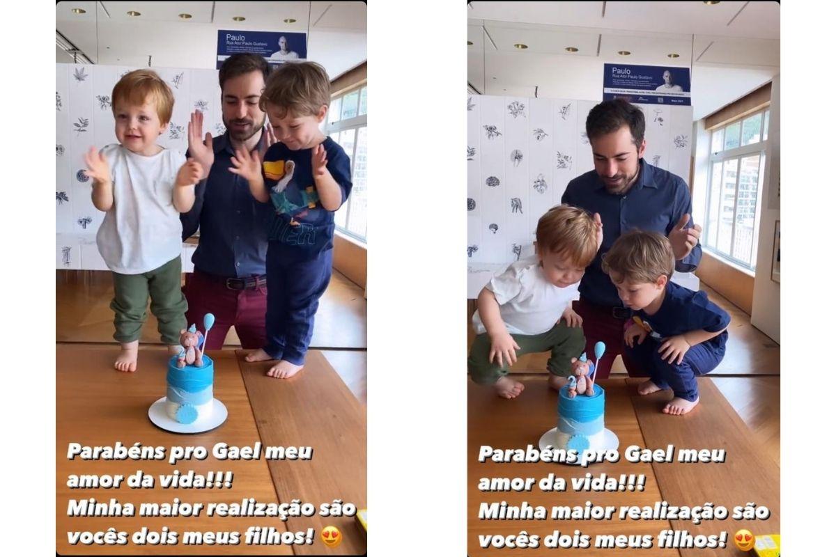 Thales Bretas comemorou o primeiro aniversário de 2 anos do filho Gael, sem o marido e pai dos meninos, Paulo Gustavo, nesta segunda-feira, dia 16 de agosto. O viúvo cantou parabéns junto das duas crianças, o aniversariante e o irmão Romeu, da mesma idade, junto da placa de rua em homenagem ao humorista. Ele cantou parabéns e postou um texto fofo nas redes sociais.