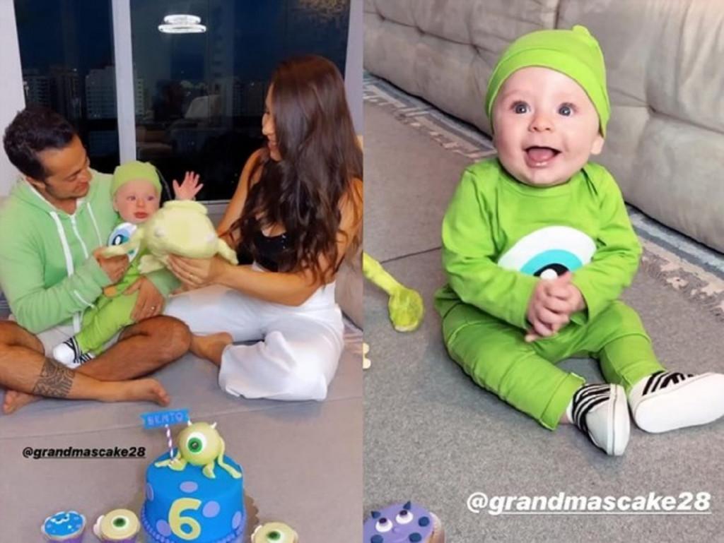 No início do mês, Thammy e Andressa compartilharam a festa de aniversário de Bento, comemorando os seus 6 meses. O tema da comemoração foi inspirado na animação “Monstros S.A” e a fantasia do bebê arrancou elogios dos pais. “Quem aguenta, resista a esse neném? O Bento já está sentando, mas a gente fica: ‘Será que ele vai cair?’. Ele tá louco pra pegar os cupcakes! Já tirei um milhão de fotos dele com esse look!”, disse a mãe do menino.