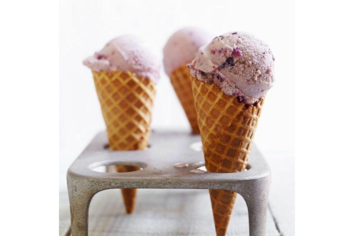 – Junte o extrato de baunilha às frutas vermelhas e em seguida coloque na mistura resfriada. Processe em uma máquina especial de sorvete e siga as instruções do fabricante. Transfira para um recipiente com tampa e congele por pelo menos 1 hora.