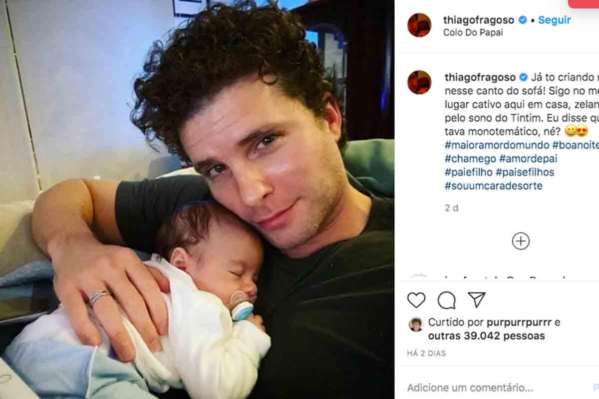 Recentemente, Thiago recriou uma foto antiga em que aparece com Benjamin ainda bebê.  “A primeira é de agora e a outra foto de nove anos atrás… Algumas coisas nunca mudam! Como o tempo passa rápido… Por isso é melhor curtir cada fralda, cada banho, cada ninar, cada babada… e até quando tem aquela crise de choro que a gente não descobre o motivo! Boa noite!”, escreveu ele, usando a mesma camiseta do Superman em ambas as imagens.