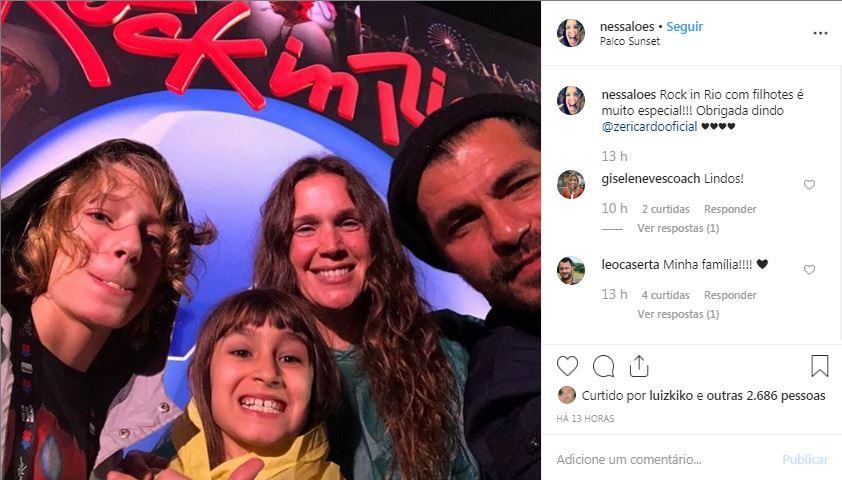 Além de Gael, Thiago Lacerda é pai de Cora, de 9 anos, e Pilar, de 5 anos. Os três são frutos do relacionamento do ator com Vanessa Lóes. A esposa de Thiago também publicou uma foto ao lado dos filhos e do marido curtindo a noite especial. “Rock in Rio com filhotes é muito especial!”, disse na legenda da publicação.