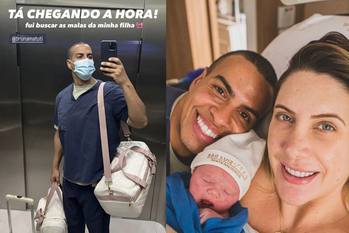 Ele comentou que a bolsa de Bruna estourou de madrugada por volta das 2 da manhã e eles tiveram que correr para o hospital .”Tá chegando a hora! Fui buscar as malas da minha filha’’, escreveu o pai na legenda da publicação ao compartilhar uma foto no espelho com as malas no elevador da maternidade.