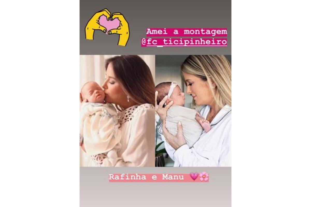 Ticiane Pinheiro, mãe de Rafa Justus e Manuella Tralli, recebeu uma surpresa muito especial de um fã clube e quis compartilhar com todo mundo. Eles conseguiram achar uma foto de Tici segurando a filha mais velha ainda recém-nascida e fizeram uma montagem comparando Manu e Rafinha.