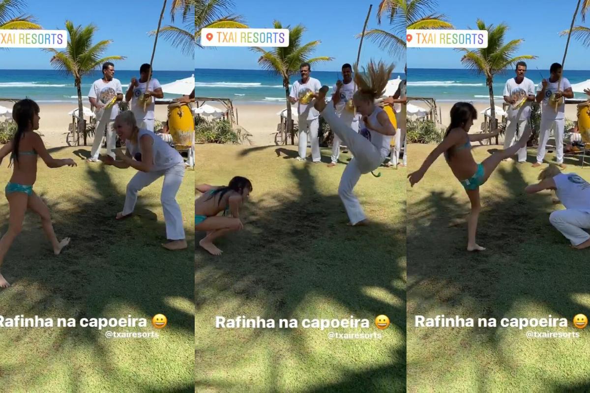 Em viagem para Itacaré, na Bahia, a apresentadora está compartilhando cada momento da viagem com os seguidores. Na terça-feira, 14 de janeiro, Ticiane mostrou todos os detalhes. Nos stories do Instagram, ela surpreendeu ao filmar a filha mais velha, Rafaella, dançando capoeira. “Rafinha na capoeira”, declarou a apresentadora.