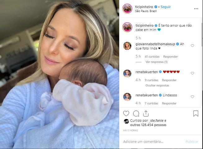 Os seguidores adoraram a publicação feita por Ticiane Pinheiro e deixaram muitos comentários elogiando mãe e filha. “Que foto linda e que momento maravilhoso”, comentou uma seguidora. “Dá pra perceber a conexão entre vocês duas, parabéns, Tici”, disse outra fã. “Você é uma mãe incrível, parabéns pela filha, aproveite muito esse momento, porque ele é único”, comentou outro seguidor.