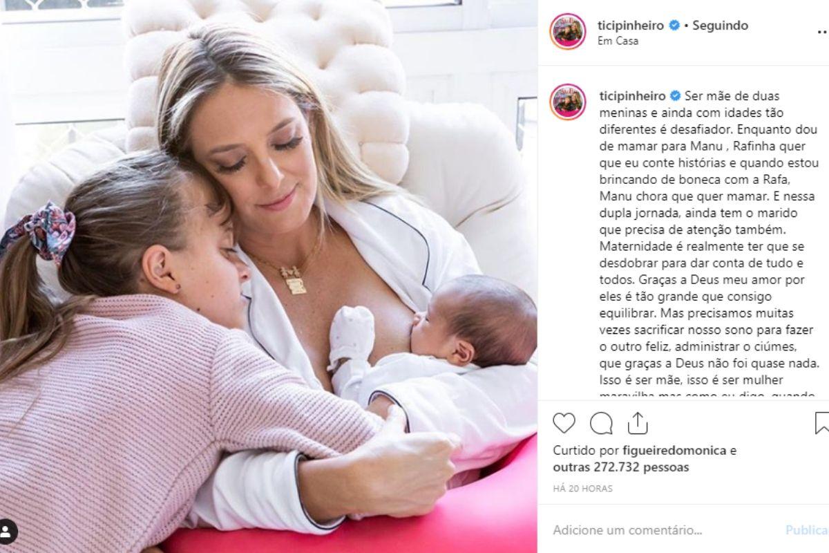 Ticiane Pinheiro, mãe de Rafaella e Manuella, ainda está se adaptando com a nova rotina da casa. Afinal um recém-nascido muda tudo! E como sempre compartilha as novidades da vida pessoal com o seguidores, ela resolveu desabafar sobre como está lidando com as duas meninas e com o marido.
