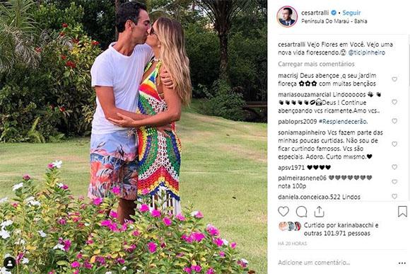 É a primeira filha do jornalista, casado com a apresentadora há 1 ano. Nessa quinta-feira (10), César postou uma foto romântica ao lado de Ticiane, declarando todo seu amor. Na legenda, ele colocou: “Vejo Flores em Você. Vejo uma nova vida florescendo.”