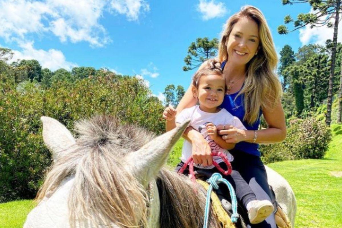 A pequena é fruto do relacionamento de Ticiane com o atual marido, César Tralli. Na imagem publicada pelas redes sociais, a bebê aparece sorridente junto com a mãe montando no cavalo. “Duas lindas”, comentaram os seguidores.