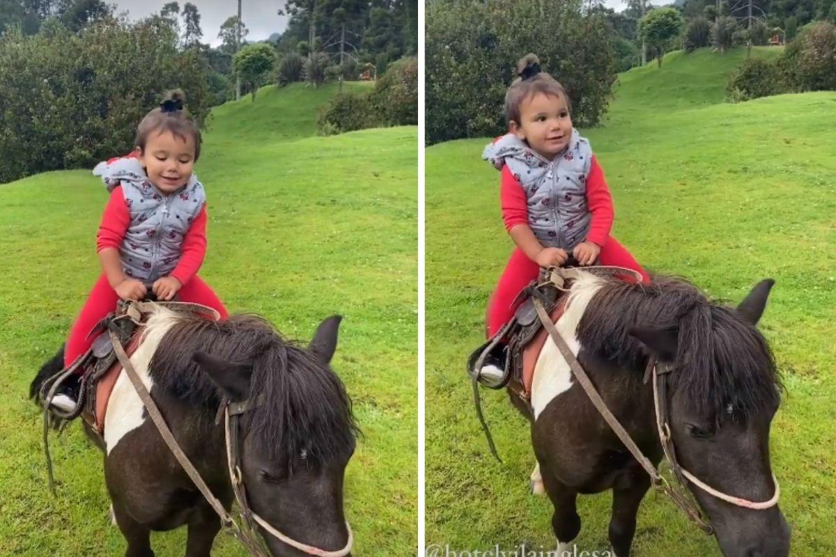 Já pelos stories, a mãe de Rafa Justus mostrou Manu sozinha em cima de um pônei, com ajuda de um instrutor. Com uma música animada, a mãe exibiu a alegria da filha em poder interagir com o animal.
