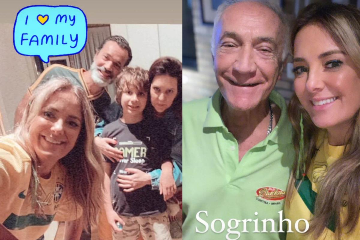 Vestindo uma camisa do Brasil, a qual mostra o nome de Pelé, a figura da TV tirou diversas fotos com os parentes do marido e até mesmo registrou um momento ao lado de seu sogro. Sorridente, ela colocou na legenda: “Sogrinho”, celebrou.