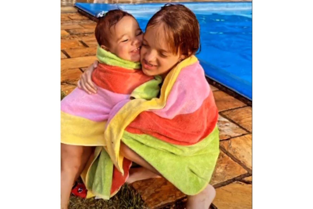 Recentemente, Ticiane Pinheiro usou as redes sociais para compartilhar uma foto de um momento especial e cheio de carinho entre as duas filhas, Rafaella, 11 anos e Manuella, um ano. Na imagem, as duas aparecem enroladas em uma toalha, abraçadas, após saírem da piscina. A família está passando alguns dias na casa de campo, no interior de São Paulo.