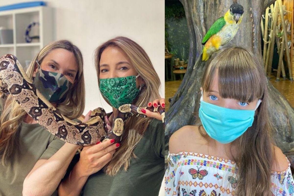 Ticiane Pinheiro usou as redes sociais neste domingo, 15 de novembro, para compartilhar fotos em contato com a natureza com as filhas, Rafaella e Manuella. Nas fotos, a mãe e as crianças apareceram brincando com cobras, pássaros e outros animais. “Dia de diversão e muito amor a natureza e aos animais!!”, escreveu ela ao compartilhar as fotos do momento.