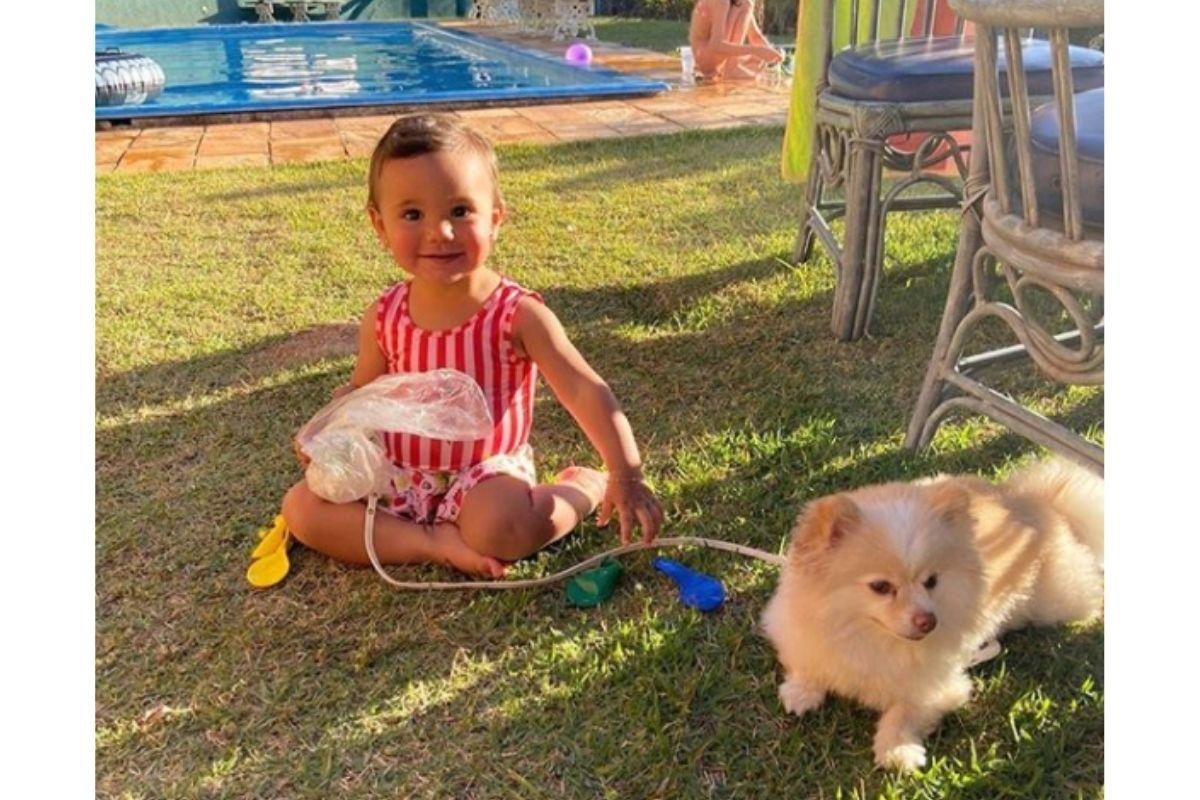 Por outro lado, a caçula arrancou suspiros por aparecer sorrindo ao lado do cachorro da família. Manu, de 1 ano, apareceu usando um maiô listrado e sentada na grama. Os seguidores apontaram a semelhança da pequena com o pai. “É a cara do pai, sua caçula. Linda”, escreveu uma admiradora. Outra respondeu: “Concordo, é igualzinha”.