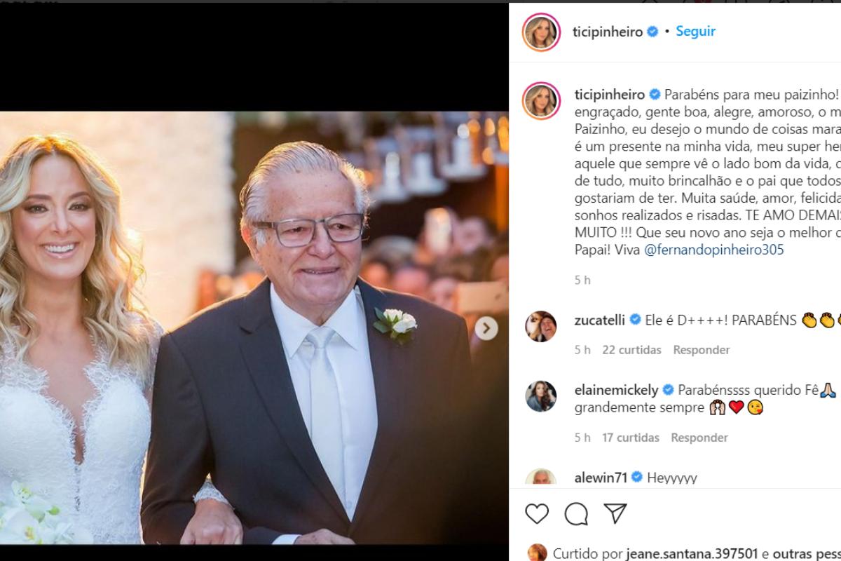 Feliz aniversário! Neste sábado, dia 13 de novembro, Ticiane Pinheiro , de 45 anos de idade, compartilhou uma homenagem para o pai, Fernando Abel Mendes Pinheiro, que está completando mais um ano de vida!