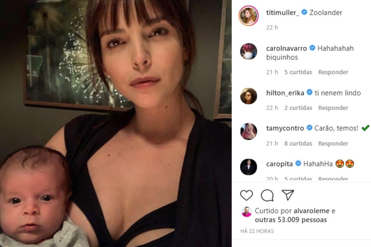 “Zoolander”, escreveu Titi na legenda, em referência ao filme que leva o mesmo nome, estrelado por Ben Stiller. Claro que a foto renderia nos comentários, e foi o que aconteceu. “Carão, temos”, disse uma seguidora. “Caramba, como é parecido!!! Lindos!”, parabenizou um fã. “A mesma expressão. Amei!!!”, escreveu um internauta.