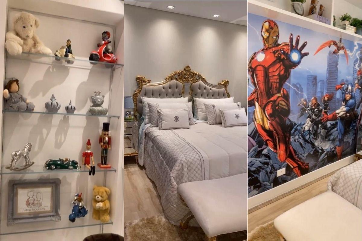 Ao mostrar o quarto dos filhos, Alexandre guardou a surpresa da decoração do quarto de Zaya, mas fez questão de mostrar o do primogênito. O quarto de Henry possui uma parede com imagens de super-heróis, além de uma estante cheia de brinquedos. O ambiente possui tons claros que deixam um ambiente clean, além de uma cama gigante com uma cabeceira com detalhes em dourado.