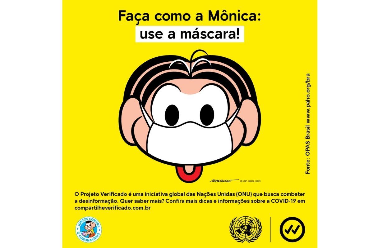 A Turma da Mônica se uniu a iniciativa da Organização das Nações Unidas (ONU) – “Verificado” – para ajudar no combate às fake news e a desinformação durante a pandemia. A campanha tem o compromisso de compartilhar orientações e informações educativas sobre a proteção contra o Covid-19. Já a partir desta quinta-feira, 3 de setembro, os personagens da Turma estamparão os conteúdos nas redes sociais da ONU e do gibi.