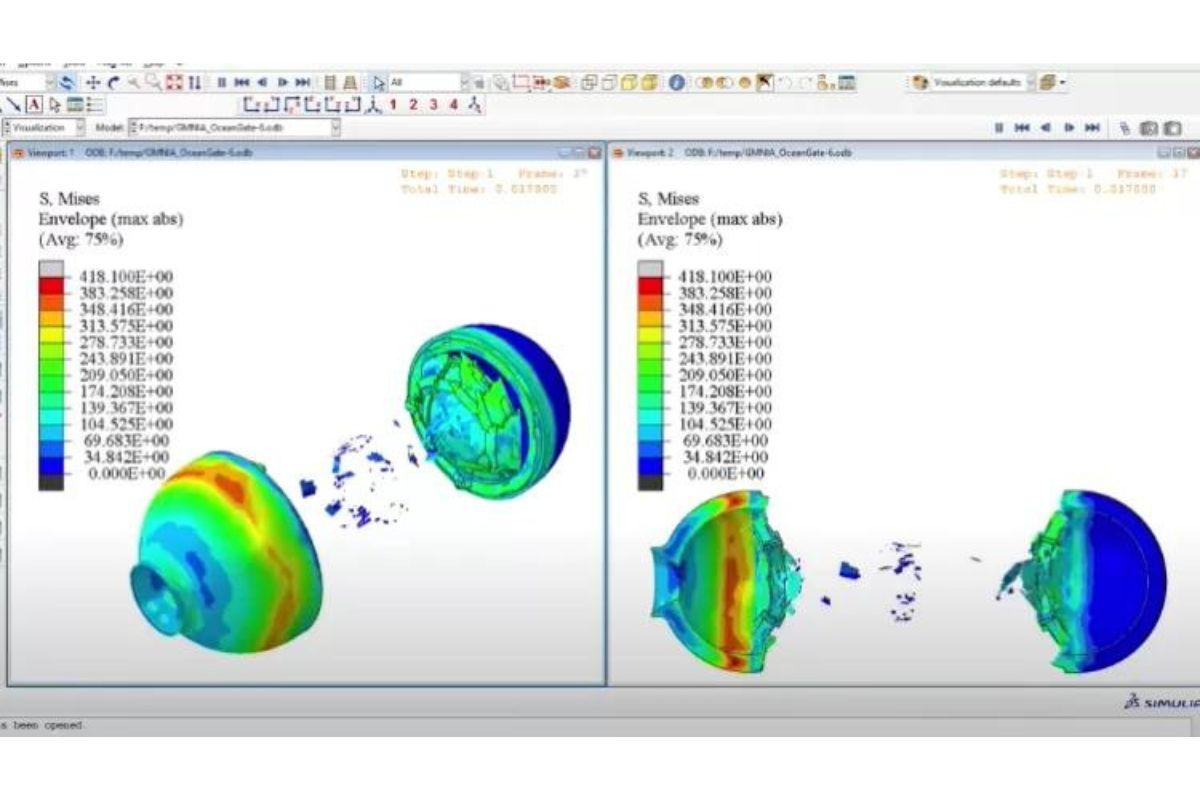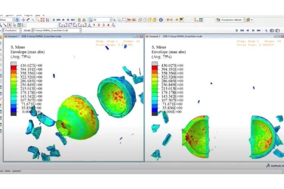 A simulação de Ronald revelou que em 14 milissegundos, todo o casco do submersível Titan, passou de intacto para a desintegração completa, se destruindo integralmente.