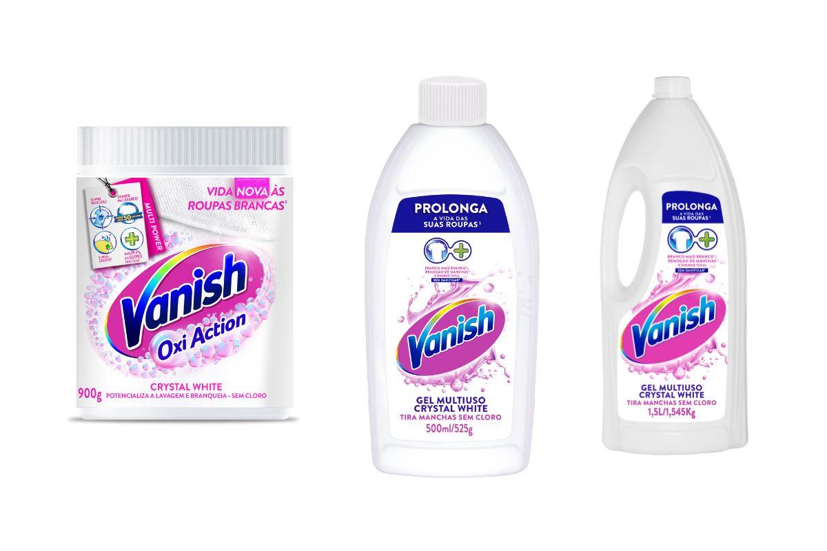 - Sabia que Vanish possui as linhas rosa, para roupas coloridas, e branca, para roupas brancas? Além disso, apresenta versões em pó e gel?