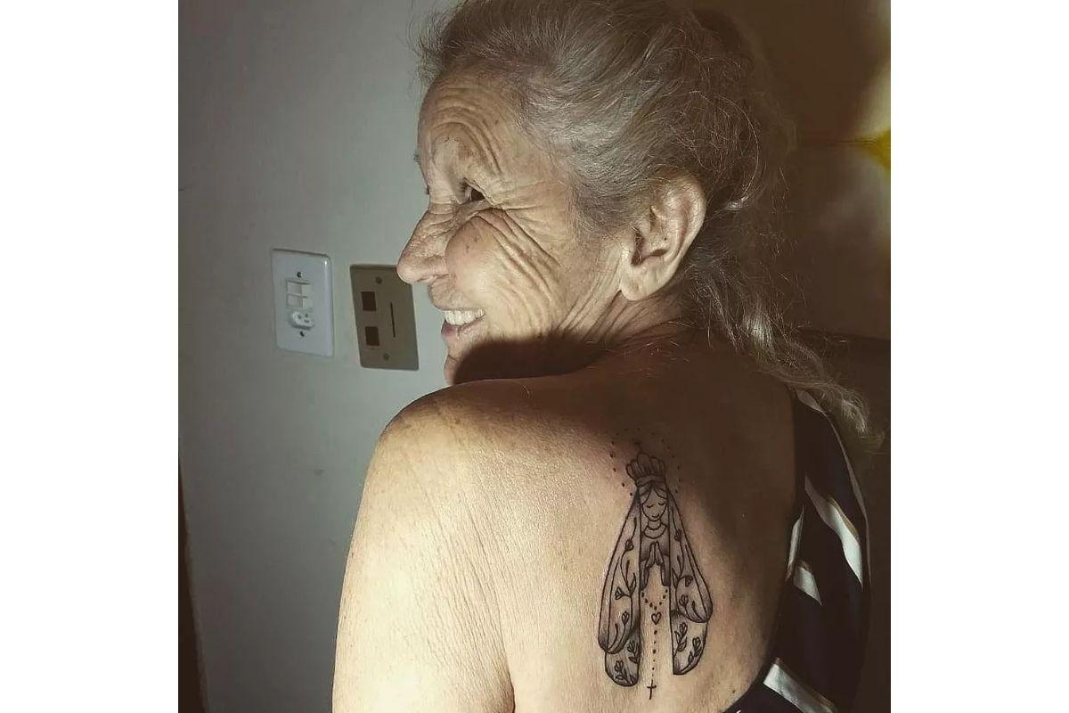 A avó, Dona Cleuza confessou que ficou com receio da dor, mas que o processo foi tranquilo e pretende fazer mais. “Não doeu. Eu decidi fazer a minha primeira tatuagem porque eu sempre quis fazer uma homenagem a Nossa Senhora da Aparecida, meu neto me incentivou, foi gentil comigo. Eu gostei muito dela, ele tem uma mão santa, porque cicatrizou muito bem, e já está perfeita. Agora quero estar forte para fazer mais, se Deus quiser.”