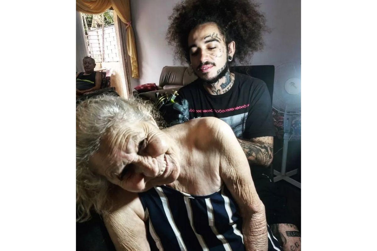 “É uma quebra de tabu gigantesca, porque já se passaram 75 anos da vida. Pessoas dessa idade têm muita coisa implantada na cabeça. E ela se abriu para isso, foi surpreendente, magnifico e é gratificante pra mim como artista e como neto. Fora que isso serve como exemplo para ampliar a visão das pessoas também”, disse o tatuador, para o G1.