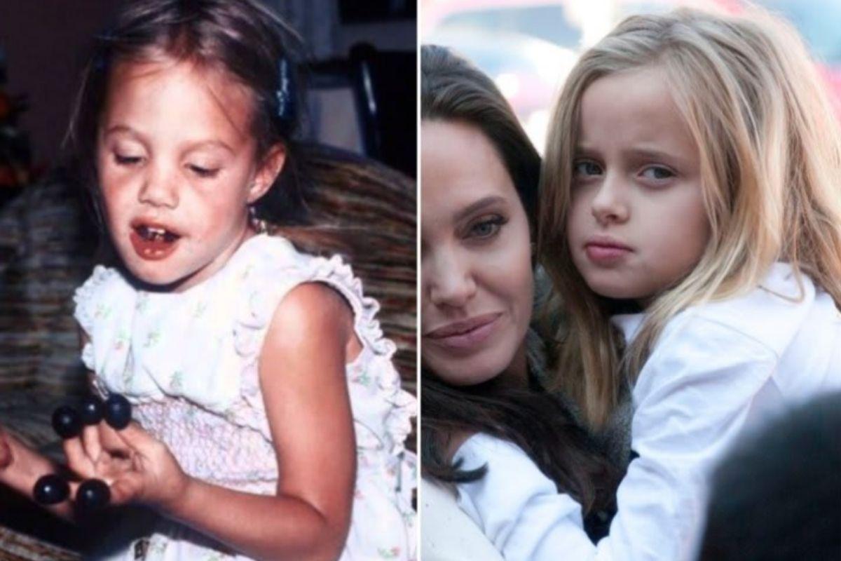 5- Angelina Jolie e Vivienne Marcheline Jolie-Pitt, durante a infância