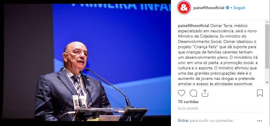 Novidade na área: Osmar Terra, criador do projeto “Criança Feliz”, que dá suporte para crianças carentes, é o novo ministro da cidadania.