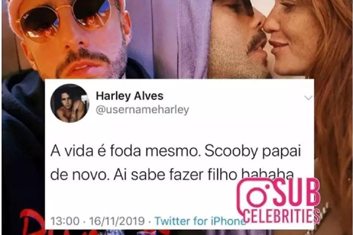 O bebê seria fruto do relacionamento de Scooby com a modelo Cintia Dicker. Um print foi feito por perfis de fofoca, no Instagram, e mostra a postagem de Harley: