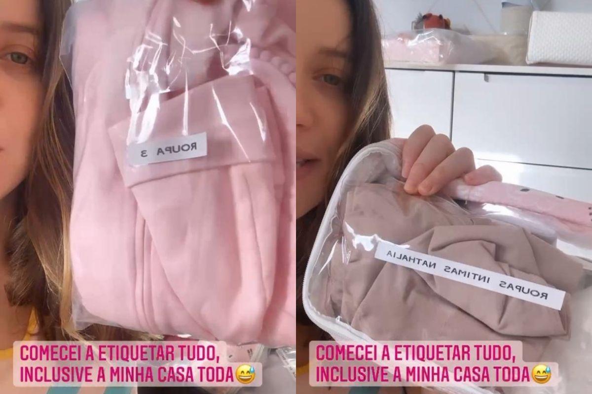 Ainda no sábado, no período da tarde, ela usou os stories para compartilhar com os seguidores um perrengue com as a malas da maternidade “Eu queria dividir uma coisa com vocês. Eu estou fazendo a mala da maternidade, que é uma loucura, uma lista gigantesca… e, para me organizar, eu ganhei uma etiquetadora. E eu comecei a etiquetar as coisas. Então eu tenho a roupa um, roupa dois, roupa três, roupa íntima… aí eu fui etiquetando tudo. Além da mala, eu fui etiquetando a minha casa inteira! Alguém já passou por isso ou eu estou doida sozinha?”, comentou nos stories.