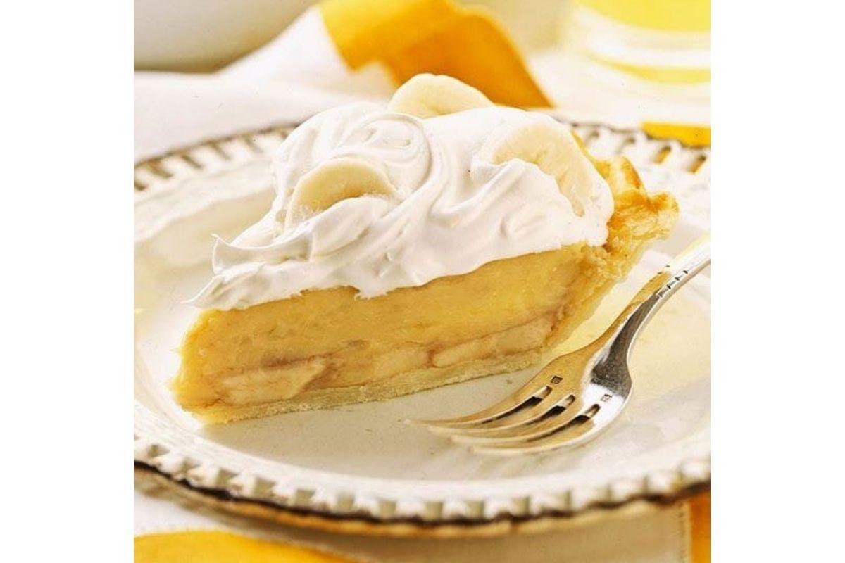 - 5- Fatie 1 banana; organize as fatias em uma única camada sobre a parte inferior da crosta. Amasse a segunda banana na tigela; mexa no recheio de creme. Despeje na crosta. Coloque o plástico filme diretamente sobre o recheio. Leve à geladeira por 4 horas ou até ficar firme.