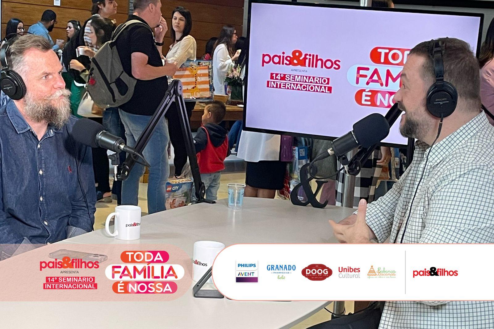 Marcos Piangers, pai de Anita e Aurora, colunista da Pais&Filhos ao lado da esposa, Ana Cardoso, e autor do best seller “O Papai é Pop 1 e 2” e do “O Poder do Eu Te Amo”. Ele é jornalista, a maior referência quando o assunto é paternidade. Comandou a palestra “Cadê a mãe dessa criança?” no Seminário. Durante o podcast, ele falou sobre o tema do seminário e a importância da sociedade para criação de uma criança. “O acolhimento acolheu o diferente. Acolheu com empatia a vida e o estilo do outro. Meu convite é para você também, é se acolher”, afirmou ele, que além de provocar reflexões, também se emocionou ao lembrar do homem que se tornou após a paternidade.