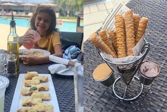 O café da manhã era sempre em casa. Almoços e jantares quase sempre fora. Uma noite fizemos festival de cheeseburger (tem churrasqueira na casa) e algumas refeições foram no clube do condomínio, um lugar superaconchegante, de um superbom gosto, com comida deliciosa e quase todos os funcionários brasileiros. Arroz, feijão, bife e batata frita tem sempre. Pizza também. Duas vezes por semana, rodízio de pizza. Tudo em frente a uma piscina linda e a uma jacuzzi deliciosa que salvava minhas panturrilhas após caminhar o dia inteiro nos parques.