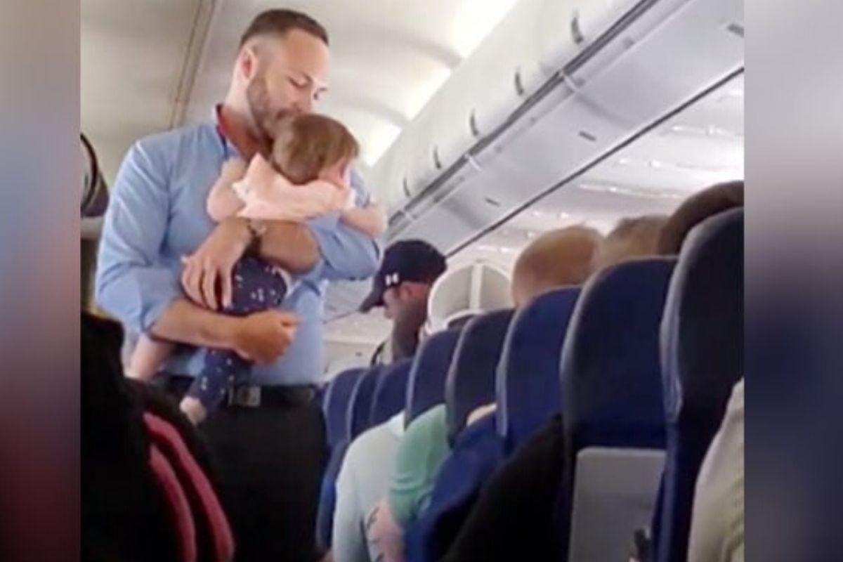 O pais da menina tentaram de tudo mas não conseguiam acalma-la, foi quando o comissario de bordo ofereceu ajuda, depois alguns instantes a garota se acalmou. Quando ele entregou a bebê de volta aos pais ela estava bem mais calma.