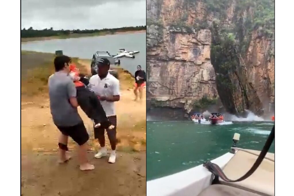 Imagens registradas neste sábado, 8 de janeiro, mostram o momento em que crianças são resgatadas com vida após o desabamento de uma rocha no Cânion em Capitólio, Minas Gerais.