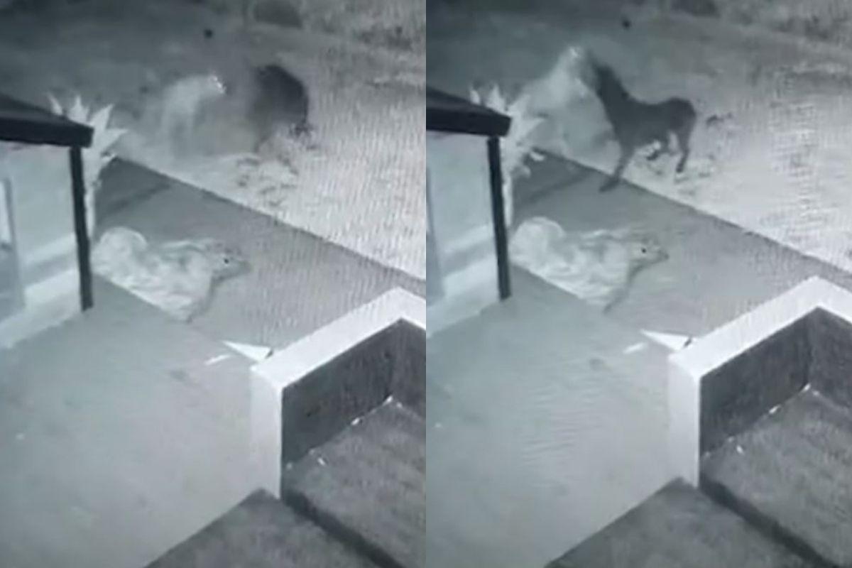 Jake Demarko, morador da cidade de Melbourne, na Austrália, passou por uma situação um tanto assustadora quando decidiu olhar as imagens de segurança de sua casa, após notar que o cachorro de estimação estava brincando sozinho no quintal. Nas filmagens os dois animais aparecem animados correndo um atrás do outro.