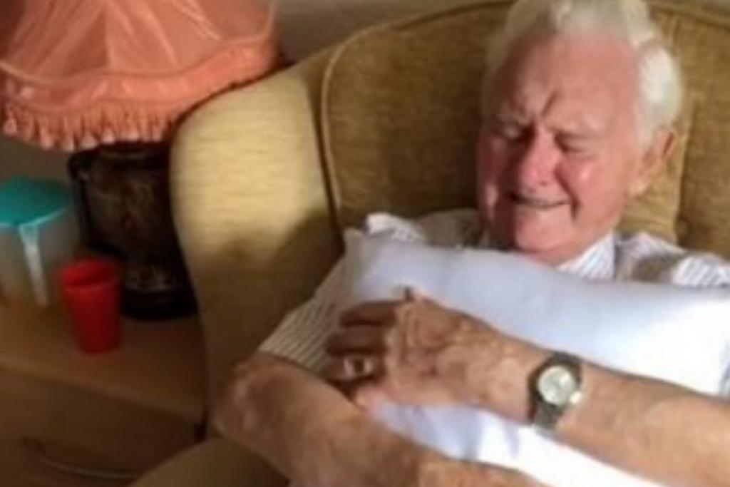 Em Lancashire, na Inglaterra, um idoso de 94 anos de idade chamado Ken recebeu um presente que o deixou emocionado. A cuidadora da casa de repouso onde ele mora lhe deu uma almofada com a imagem do rosto da esposa, que já faleceu.