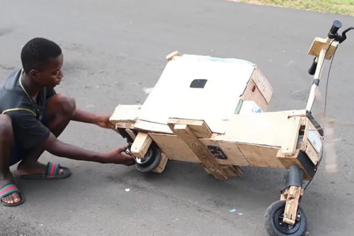 Samuel Aboagye é um adolescente do ensino medio morador de Gana, na África, que vem ganhando grande reconhecimento pela criatividade e invenções tecnológicas com baixo custo. Recentemente, o jovem construiu um moto elétrica feita de madeira movida a energia solar, tudo isso com peças recicladas!