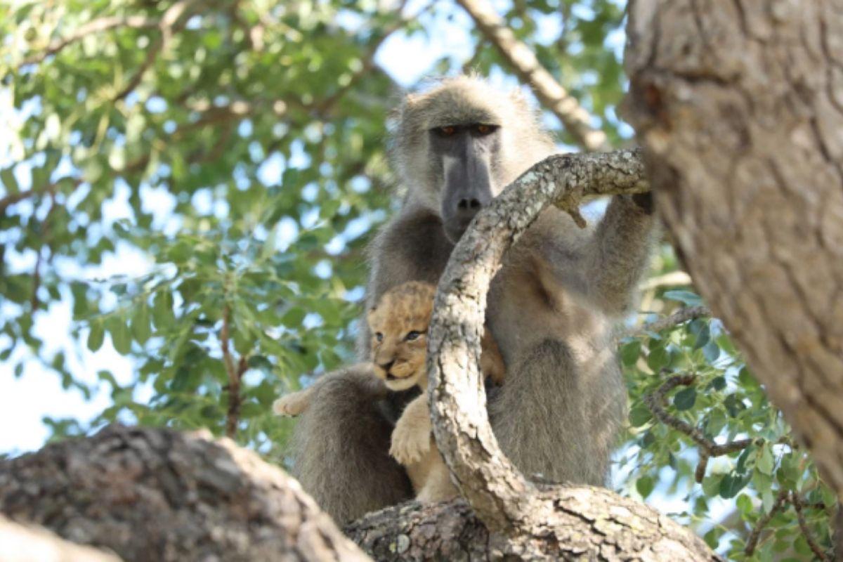 Segundo o jornal The Sun, Kurt Schultz é o guia de safári do parque que gravou as cenas no momento exato em que o babuíno pega o filhote de leão das mãos de outro macaco e o carrega para um árvore. “Ele estava cuidando do leão como se fosse um bebê macaco. Trabalho há 20 anos como guia e nunca vi o cuidado e a atenção prestados a um filhote dessa maneira”, contou Kurt.
